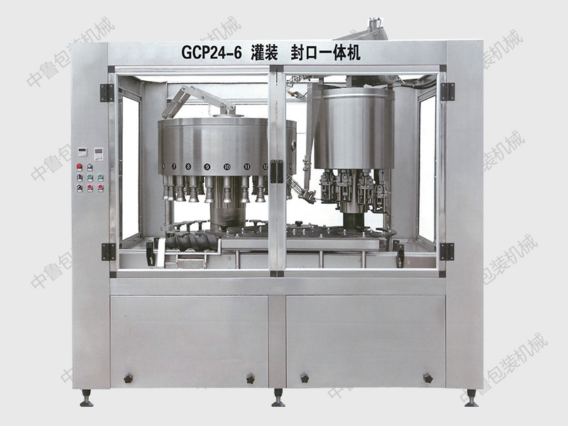 該灌裝封口聯(lián)體機(jī)主要應(yīng)用于白酒液體的灌裝封口,本機(jī)將灌裝封口合為一體,節(jié)省了設(shè)備的安裝空間,該設(shè)備結(jié)構(gòu)緊湊、安裝合理、操作方便,采用單電機(jī)動(dòng)力輸出、變頻調(diào)速,兩臺(tái)設(shè)備運(yùn)轉(zhuǎn)的同步性,本機(jī) 灌裝容量大,可在150-750毫升之間調(diào)整,調(diào)量方便,采用電動(dòng)同步調(diào)整容量,按下加減調(diào)量按鈕可調(diào)整灌裝量, 顯示調(diào)整容量。
